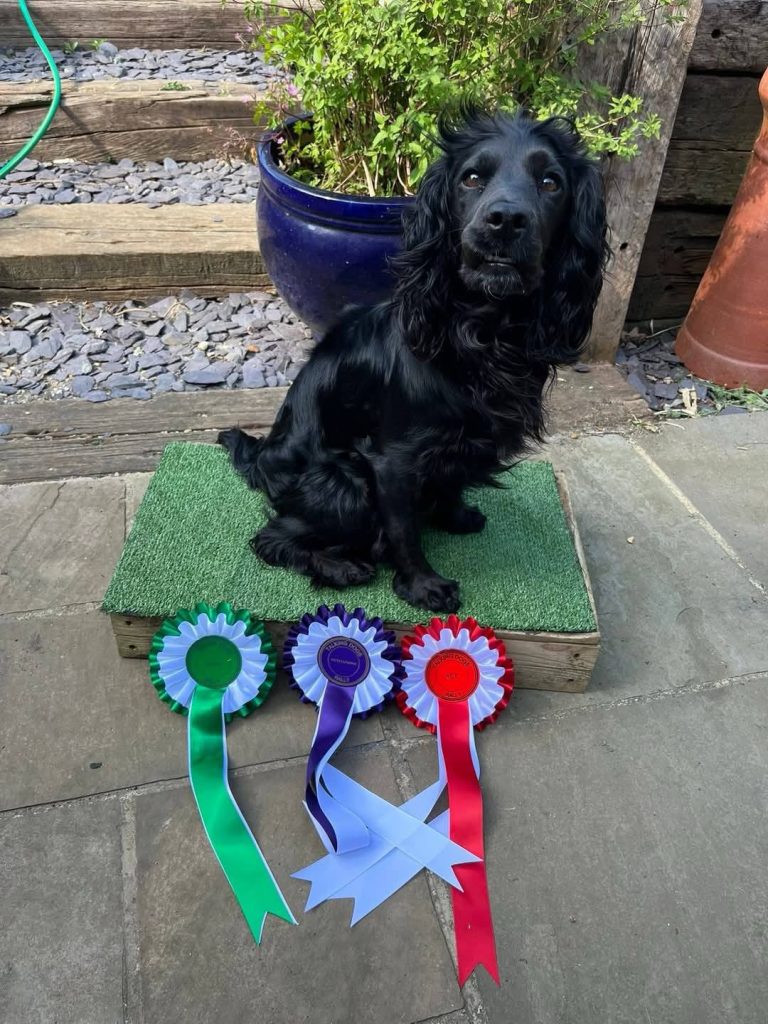 Eve & Sona – Level 1 – achieved rosettes of every colour with GOOD, OUTSTANDING and ACE scores, impressive results with Sona, a busy spaniel who has the most impressive engagement for heelwork during rally rounds and has improved so much since last year, well done Eve on helping Sona to improve and engage. They achieved their Level 1 Title.